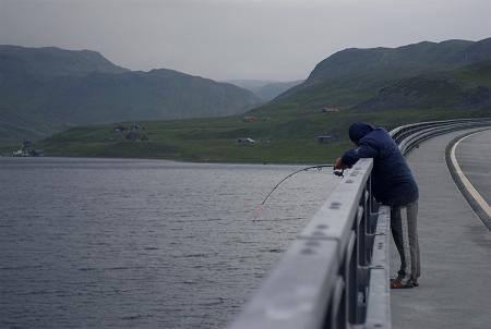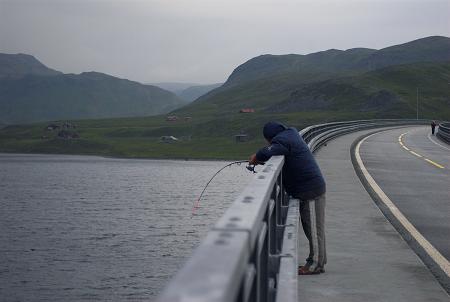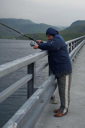 Lekcja wędkowania z mostu. Okolice Nordkappu 2006 r