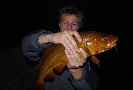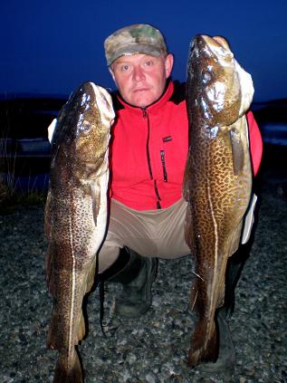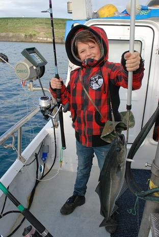 Daniel z trzema rybami za jednym braniem ( 2 czarniaki i dorsz)