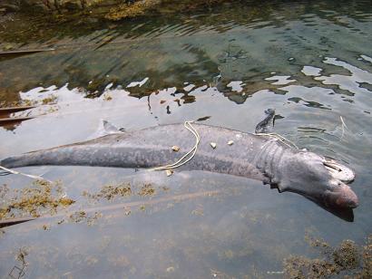 W porcie oglądaliśmy rekina złowionego przez rybaków.