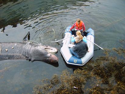 Trzeba ją zmęczyć i przeholować przy powierzchni przesuwając się na moście coraz bliżej brzegu.